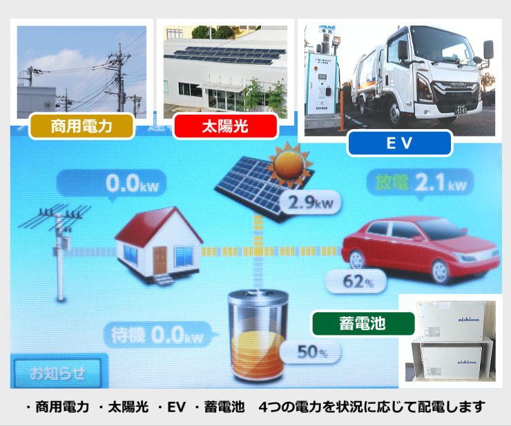 災害時にこれらの電力を地域のために活用できるよう、電気自動車に充電した電力を使用し、200人分の料理の提供や携帯電話への充電を行う「災害時対応訓練」を毎年2回実施している。このような取組を通じて、カーボンニュートラルを目指しながら災害に備える活動を行っている。